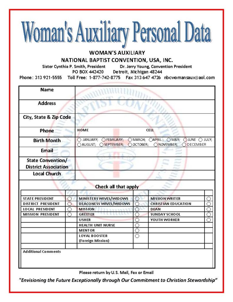 Calling All National Baptist Women! Update Your Personal Data Today!