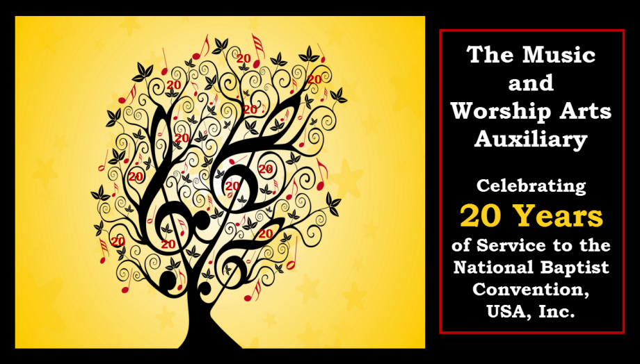 Congratulations to the Music and Worship Arts Auxiliary as you celebrate 20 years of existence as a vital and viable auxiliary within the National Baptist Convention, USA, Inc. As President of our Convention, I delight in wishing you and all of your constituent members a time of celebration, rejoicing and singing praises to our God for His wonderful works through this arm of our Convention.
